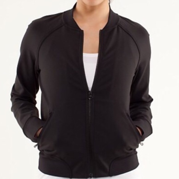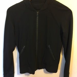 One of Lululemon's baseball style jackets. Sleeves are a heavier cotton, the body of the jacket is a softer slicker material I think it might be a version of warpstreme? Worn only a few times, excellent condition. Super cute!✨Bundle to save // use the offer button // I prefer to sell on 🅿️🅿️ or Ⓜ️ // no trades