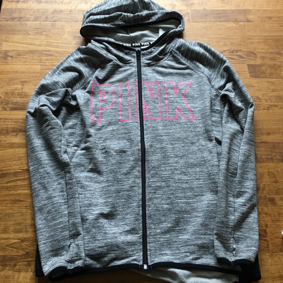Lightweight EUC VS Pink full zip hoodie. Sleeves have thumb holes. Love this so much but it don't fit anymore. No tears, stains, or flaws! Hard to find.
