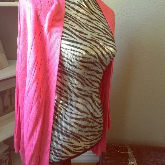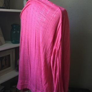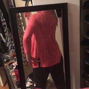 I bought this pink cardigan from target but never got around it wearing it. Been in my closet all year! It is a bright color and is a light, breathable fabric. I bought it for spring and cooler summer nights to throw over my tanks. Sheer material.