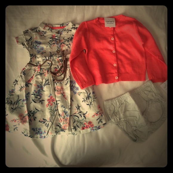 Cute little dress & cardigan set. Pair it with some funky stockings & your darling baby girl is ready for Fall.
