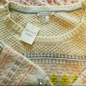 Bnwt Victoria's secret sweater in cream color with multicolor design. Very cozy and gorgeous knitted sweater. The sleeves are 3/4 in length. Sure to keep you warm!