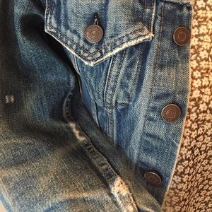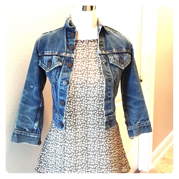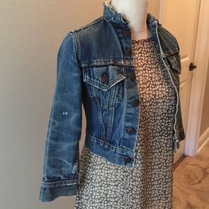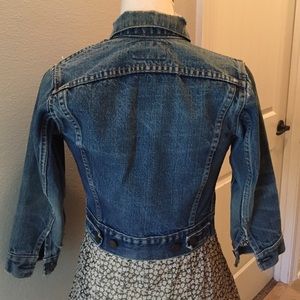 True vintage and super rare Levi's cropped jean jacket with 3/4 length sleeves. Vintage condition with a lot of signs of wear. It is meant to add to that vintage look. Fraying and holes present. Purchased in Japan for big bucks. Jacket still has plenty of life left, especially since Levi's jean jackets last forever and just get better with age!