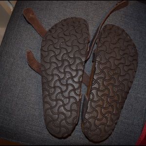 I'm not sure what the exact name is, because I bought them from a posher. I can post different pictures if you would like! They are dark brown straps and tan, soft suede inside if that helps at all, sorry! @lbsky