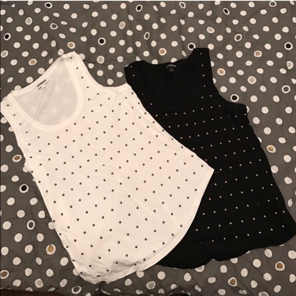 Really cute muscle tanks for sale. I have two one black with gold studs on the front & one white with silver studs on the front. Never worn in mint condition! 2 for 12 or 1 for 6.00