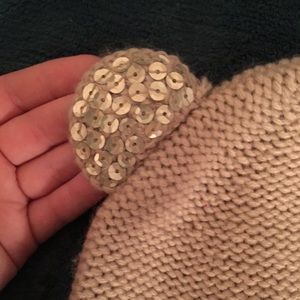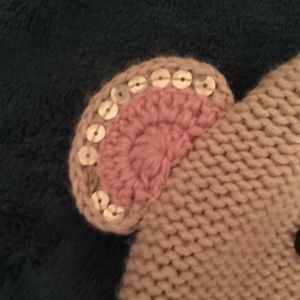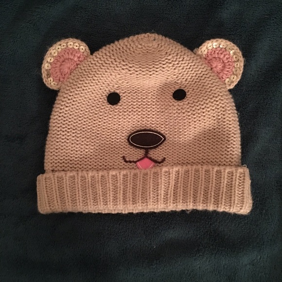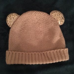 Cute tan teddy bear knit beanie, never worn, has sequins on the ears front and back. Bought from a store called Francesca's Collections.