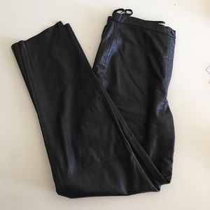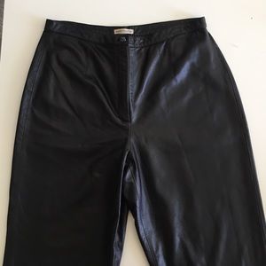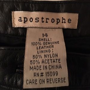 True to size, straight legged, no back pockets, brand New without tags, tags fell off, quality soft leather like lamb skin, size 14 , measured waist length is 16 inches laying flat and 32 inches around,44inches height, inseam 32