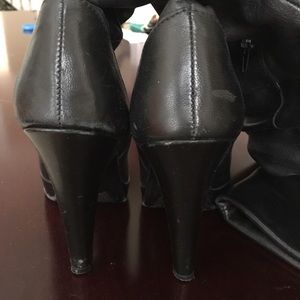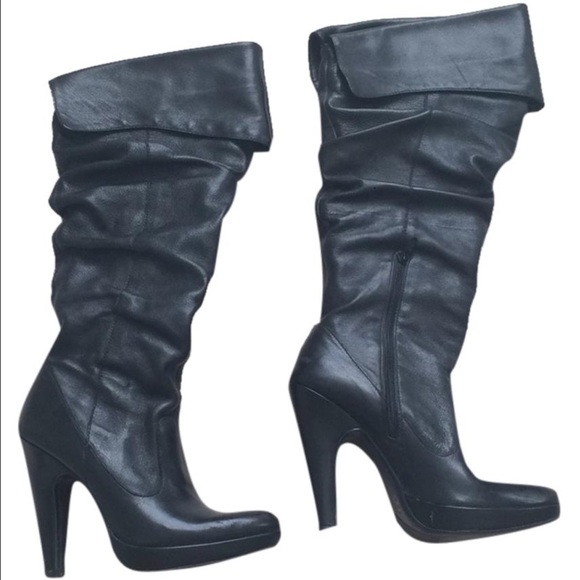 Platform black leather boots. Soft leather, gently used with some minor scratch shown in the picture.