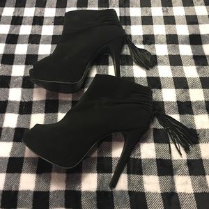 Worn only twice. You will definitely feel like a rockstar in these super cute ankle boot or sandals. Material is suede so there are some scuffs- please see photos for details. Please feel free to make an offer!
