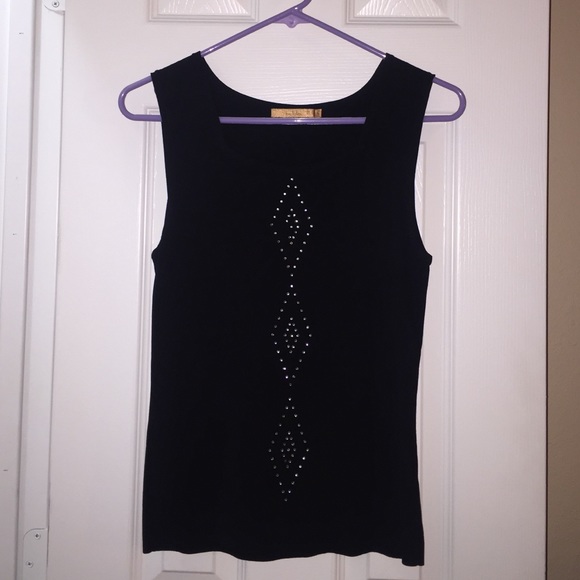 Cute black blouse. Would look great with black dress pants and a blazer. Size L. Has missing rhinestone shown on picture 2. In good condition