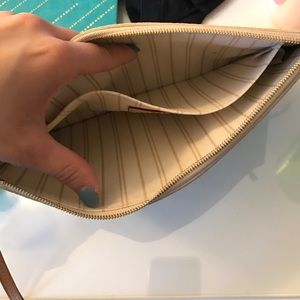 100 percent authentic. This came with my neverfull. I'm ONLY selling the pouch because I barley use it. There are two light lip gloss marks in the pouch, but it isn't too bad at all. Also, the date code is extremely hard to capture- I tried my best! Please ask if you have any questions at all☮️💟 the reason I didn't put a price up, is because I'm unsure, so please comment with any prices you have in mind. I will not go under 250.