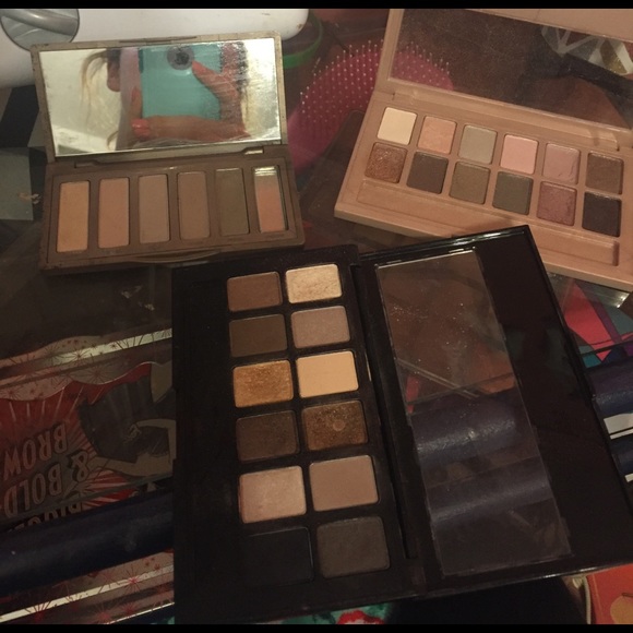 all used, Naked 2 basics is the first picture & the others are the blushed nudes and the nudes by Maybelline