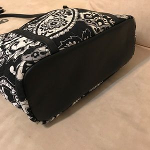 Brand new without tags. Vera Bradley Midnight Black Paisley with faux leather black trim. Its spacious interior holds all of your day-to-day essentials close at hand--while the signature print pattern on the outside adds an irresistible touch of flair to your wardrobe. Slip pocket in front with silver hardware and logo. Zip pocket in back and full top zip closure. Six interior pockets. Measures approximately 15"W x 11"H x 4"D with 12" strap drop