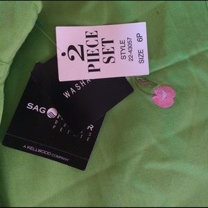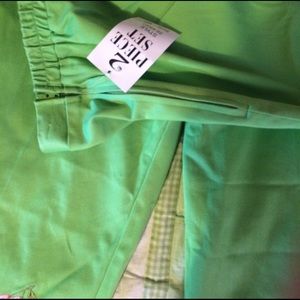 Bright green Capri pants and top with pink cherries. Size 6P. Top and capris both have zippers on the side (shown in pictures.) super cute and brand new with tags. Never worn. The top flares out slightly from the waist creating a perfect hourglass. Note: I cannot model as I am typically a size 2. Brand is Sag Harbor. New condition. Tags: nwt lime kiwi cherry pin-up 50s vintage style cotton rockabilly cute kawaii spring summer pattern print scoop neck vneck set outfit complete