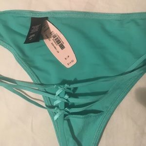 TWO pair of v string Victoria's Secret underwear. Both size small, NWT. One is pink with black details and black string. Other is teal. Both have three strings on the back with tiny bows. Priced at $14.50 a piece. Selling together for a bundle!