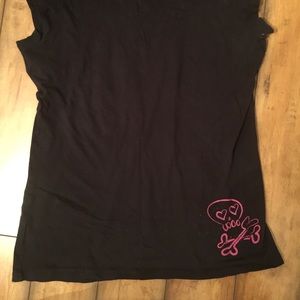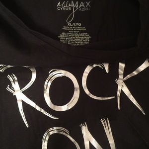 Miley Cyrus by Max Azria, xl black tee "Rock On!!!" On front & pink skull & crossbones on back corner. Good condition. Smoke free home.
