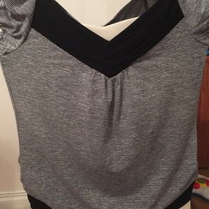 Excellent condition. Casual black & gray v line top with banded hem, billows a little. Smoke free home.
