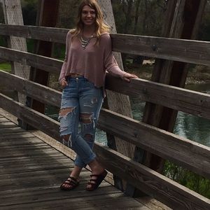 Super cute and my favorite pair of jeans! They can be dressed up or down as seen in the photos. Since they've been worn they're more distressed than the model photo but they're still super cute and very very comfortable. Size 4 Regular. Feel free to ask questions and make offers.