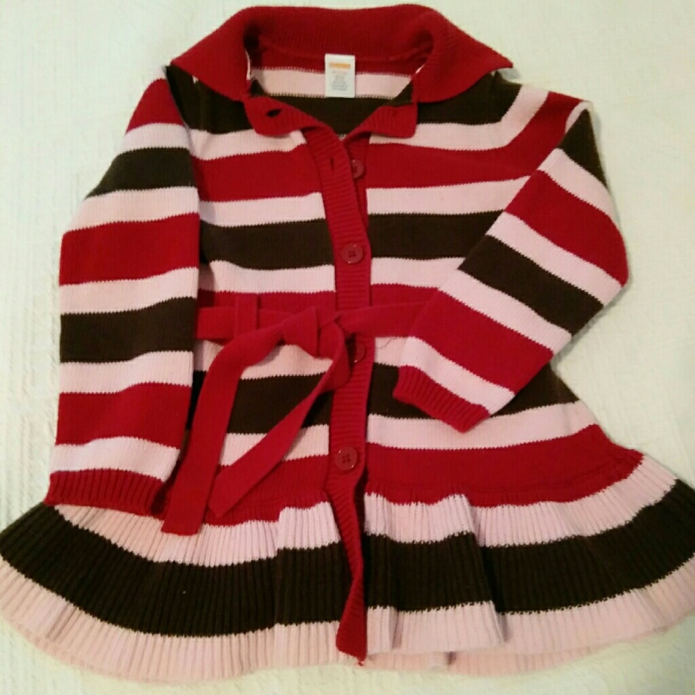 Stylish Pink, Brown, & Dark Red Sweater that buttons down & ties in the front. This item is Gently Worn & in Great Condition! From a Smoke and Pet Free Home.