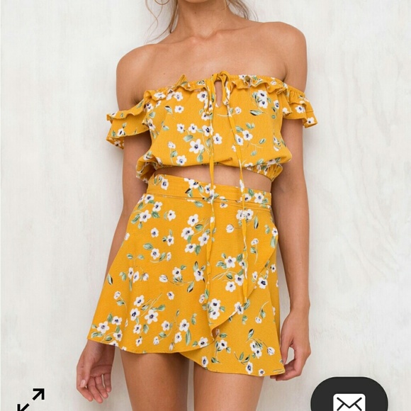 This is a off the shoulder top with a wrap skirt. Really cute but just not my style. I have never worn this set.
