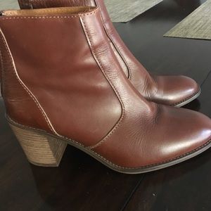Beautiful booties from Madewell awesome condition worn once! Fade scratches of being in a box! Color dark chestnut! 2.5 heel and ankle high 4.5