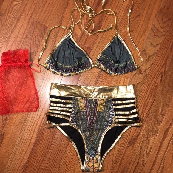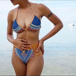 OLIVE colored high waisted Dashiki bikini. Beautiful piece. From “Redstarcollection” which is now called “Oloriswim”. Size SMALL. Only tried on. Bought for $179 plus shipping. GREAT FOR VACATION!