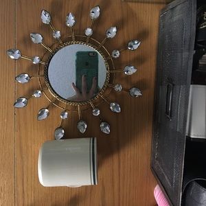 MIRRORED, BEJEWELED FLOWER WALL DECOR. ALL JEWELS INTACT & NONE MISSING. MIRROR IS IS GREAT CONDITION W/ NO CRACKS. PRICE INCLUDES THE SET.
