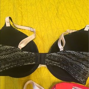 Size 34D fits 32 DD as well. 2 Bras with convertible straps. Lightly padded and great support. The black one has tags cut out for comfort but it is exactly the same as the red.