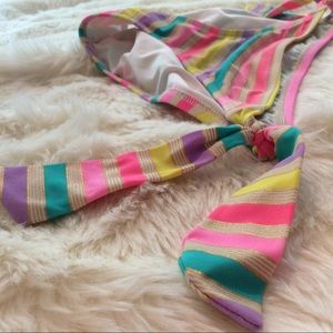 Victoria's Secret bikini bottoms - in size small. Excellent condition, multi color striped pattern with metallic gold detail. Ties on side. No stains, or flaws.
