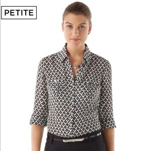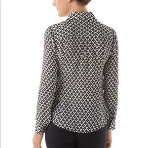 Silk camp shirt with classic details and a modern geo print proves diamonds are still a girl's best friend. 100% Silk. Hand wash. Imported.