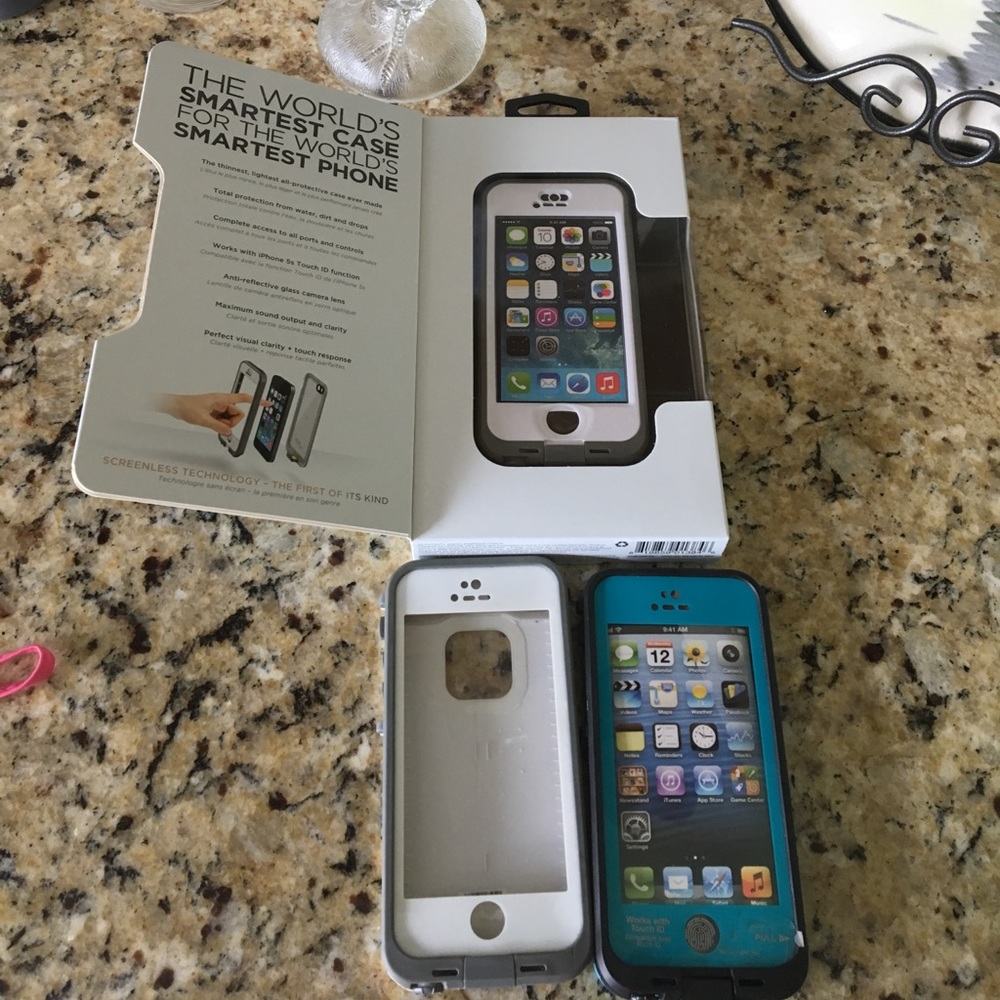 iPhone 5 and 5S life proof cases. 2 white & one blue. One white is new in box. All of them are in awesome condition only used a few times.