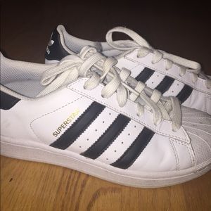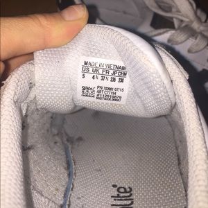 I only wore them like 5 times! In the pictures it's not the cleanest it can be, so I'll make sure it will the cleanest when you get it! Laces are a bit dirty but you can thrown them in the wash. Soles of the shoes are barely dirty. This is a size 5 but fits a US women's size 6/7 (I'm a size 6 normally and its little too big) Willing to lower price!