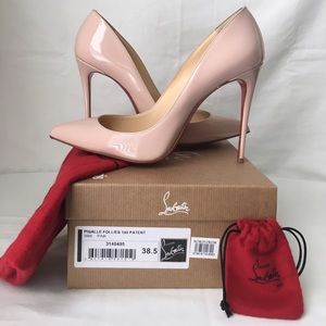 Christian Louboutin Pump 100mm, 38.5, Color Pink, Patent Leather, Red Bottom, 4 Inch Heel, Style Pigalle Follies, Runs Small, Normal Wear at Bottom, Worn Twice, Box & Dust Bag