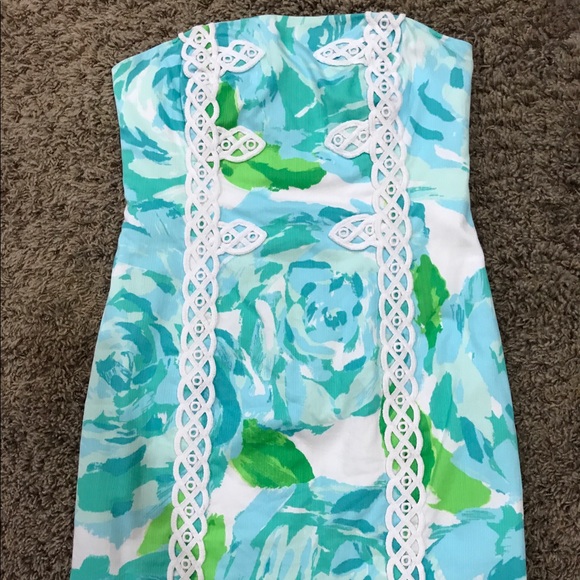Lilly Pulitzer blue green white floral strapless dress.. in good used condition