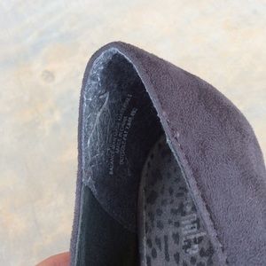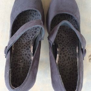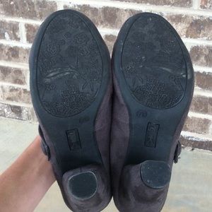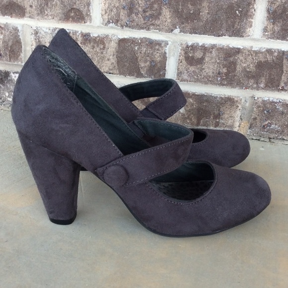 Grey heels with strap and button . My absolute favorite shoes until I grew out of them !! Great condition just on the inside on the back has some wear but besides that they are perfect !! Super comfy not hard to walk in . Smoke free pet free home