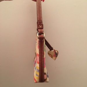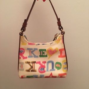 πΉππππ»ππ―πΎππ½π¦πππ¦ππ€·π»ββοΈDOONEY & BURKE MINI PURSE IN WONDERFUL CONDITION. This is a used purse but you ca barley tell. It has a strap on hook inside for your π and one pocket inside. Has a charm as listed that says "Dooney & Burke." Dimensions: 6.5"Lx5"Hx1"W β¨β¨β¨β¨multi-colored zipper closure // leather // strap drop: 5.25"