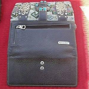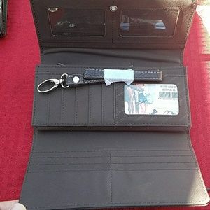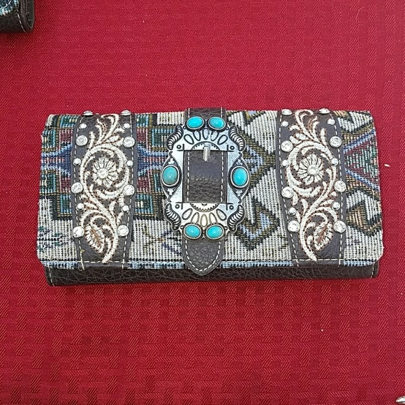Western wallet with turquoise stones on buckle. Comes with wristlet strap.