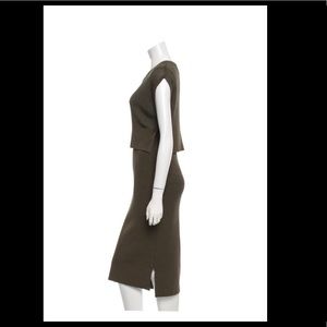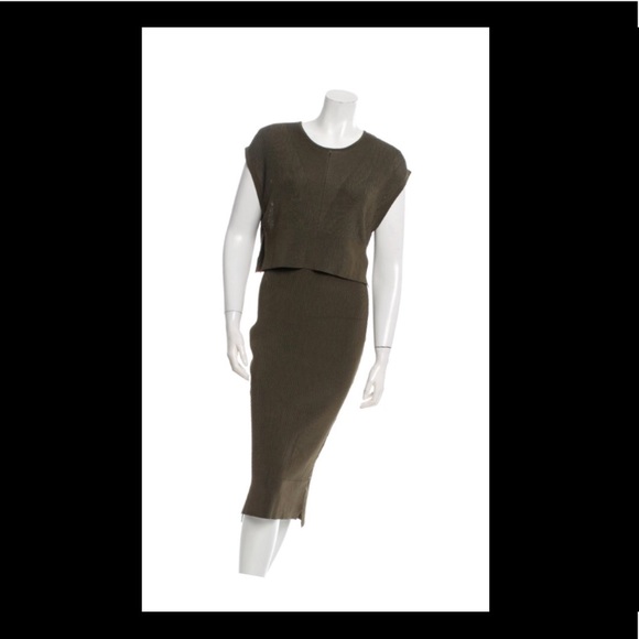 Olive Ronny Kobo sleeveless Baku dress with scoop neck and ribbed knit detail throughout.
