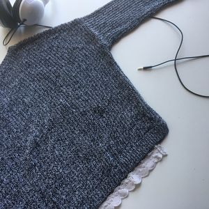 This trendy sweater goes with any outfit and is super comfortable. Great condition, worn a couple times. Lace detailing in bottom front. Labeled XS but runs big and could fit XS, S, and M. Very versatile.