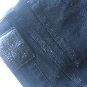 Ordered these but sadly didn't fit, so never actually wore them once. Super trendy straight cut with big leather logo in back. Size 28.