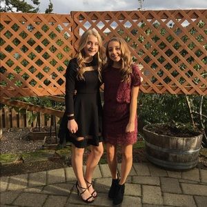 Soft flowery design. Maroon colored. Only worn once to homecoming. I am selling both pieces to the dress for the price below. Offers always encouraged