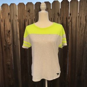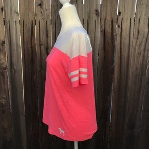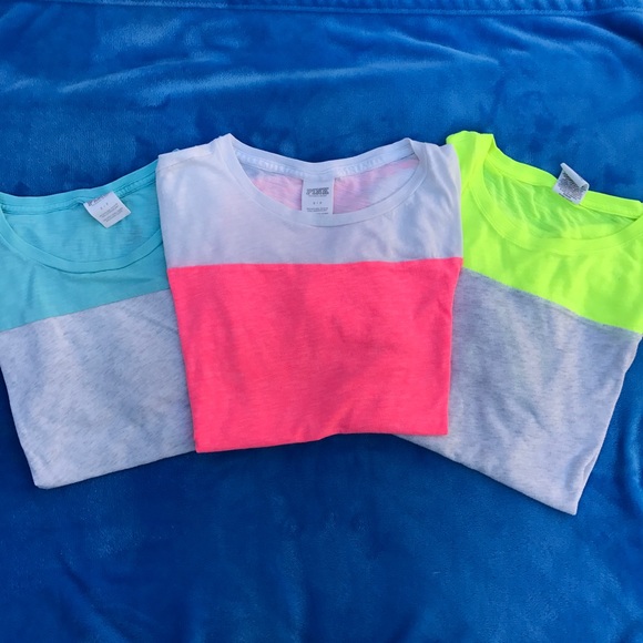 All size small. Pink and white has a little tear by the pink dog and pilling. Yellow has pilling and little dog is a little faded. Blue has pilling and little dog is faded. Smoke free home. Well loved