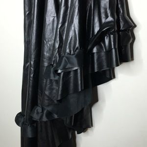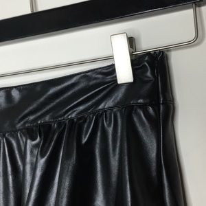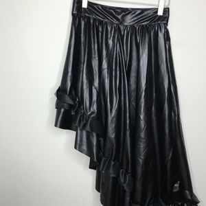 This skirt features a black vegan leather shell, side zip closure, and ruffle detailing along hem. 10/10 club look. Marked size small, worn once, like new condition. Not nasty gal, marked for exposure