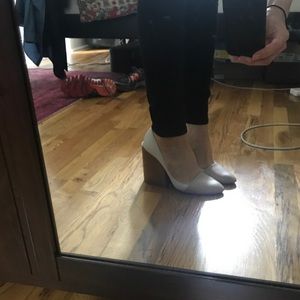 Chloe leather heels with wood wedge in size and 40.5. Comes with box.