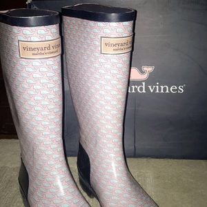 Rain boots by Vineyard Vines, perfect for rainy days on campus. Just as affective for rain as it is fashionable. Fits comfortably for anyone from size 8-9. Only worn a few times.