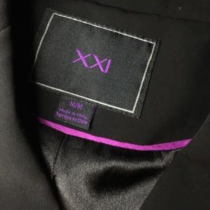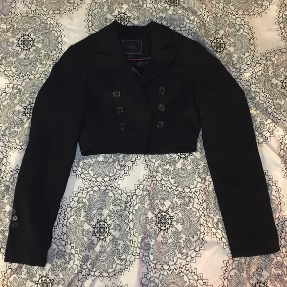 Super cute cropped blazer. Black color. Size M. Forever 21. Padded shoulders. Shoulder to shoulder measures 14inches. Length measures 14". Shoulder to sleeves measures 24.5" inches. Armpit to armpit measures 17"
