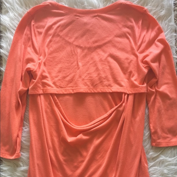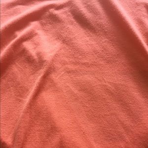 Really beautiful coral color, shirt has some pilling but no stains or holes. I'm not familiar with the brand, however if I remember correctly I bought it from jcpenney. This top is perfect paired with white jeans!!