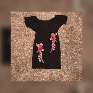 Of the Shoulder Black mini dress, size M. Fits like the model. Brand new, never worn with out tags. I DO TRADE 🌟