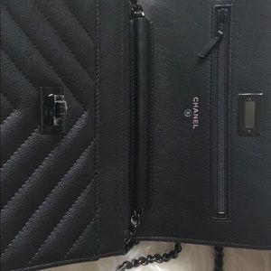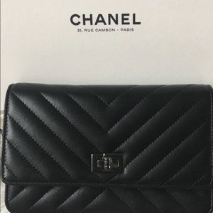BNIB ✨stunning Chanel (re-issue) turnlock wallet on chain so black in lambskin ✨