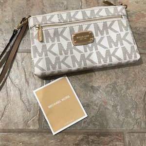 NWOT large MK wristlet - only used a few of times ; no visible damage !! EVERYTHING MUST GO! All reasonable offers are encouraged ๐ I can't say yes if you never ask!