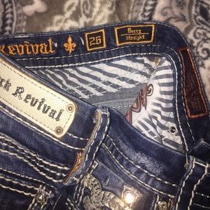Amazing condition, rock revivals. Size 26 berry straights. No flaws. Beautiful stitching down the leg. I love these jeans, they're washed inside out and air dried. I will trade for a size 27 ๐